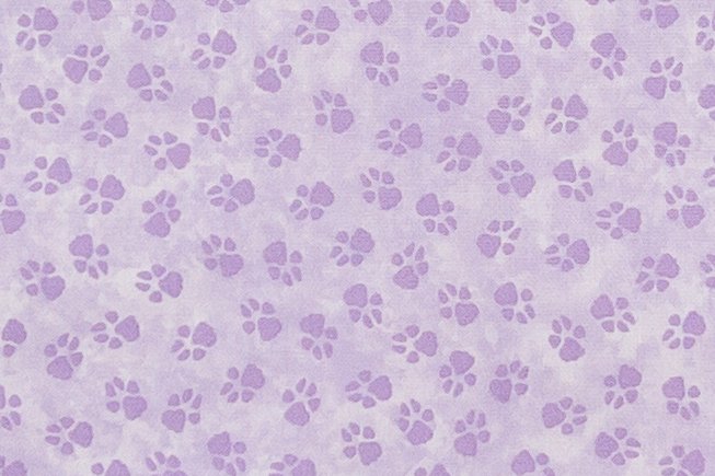 Paw print fabric in lavender from the “Dog On It” collection by Benartex